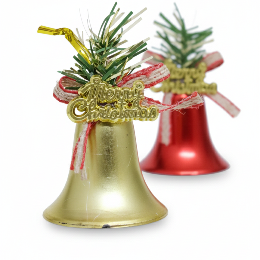 Add a cheerful festive touch to your Christmas décor with this charming set of 7.5 cm decorative bells. Each bell is beautifully designed with a mini Christmas tree topper, a ribbon bow, and a “Merry Christmas” charm—perfect for enhancing the holiday spirit in any space.