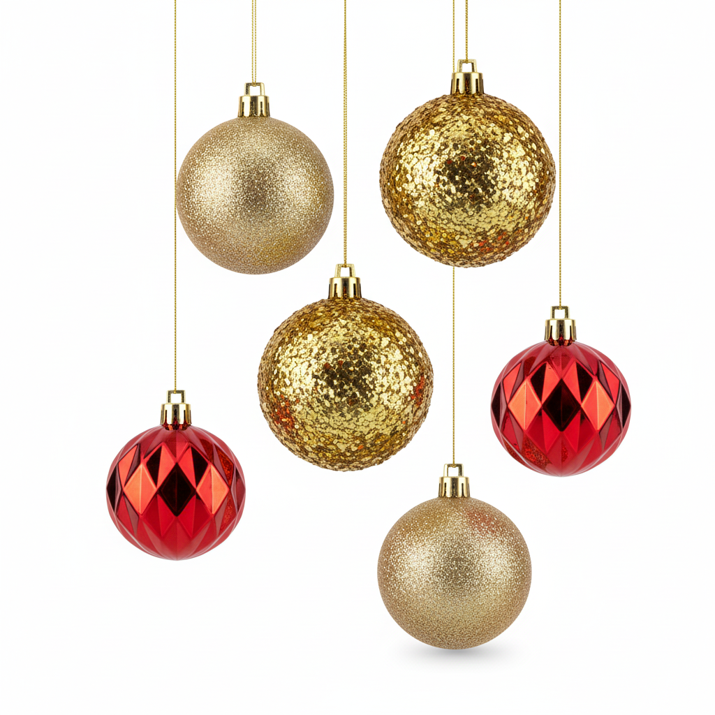 Bring festive sparkle to your Christmas décor with these lightweight, beautifully crafted foam baubles. Designed with a stunning mix of glittering gold and shiny red diamond-cut finishes, these ornaments instantly elevate the charm of any Christmas tree, wreath, or holiday setup.