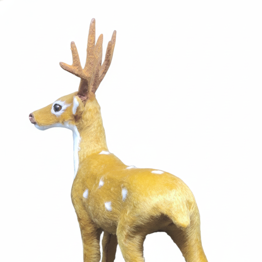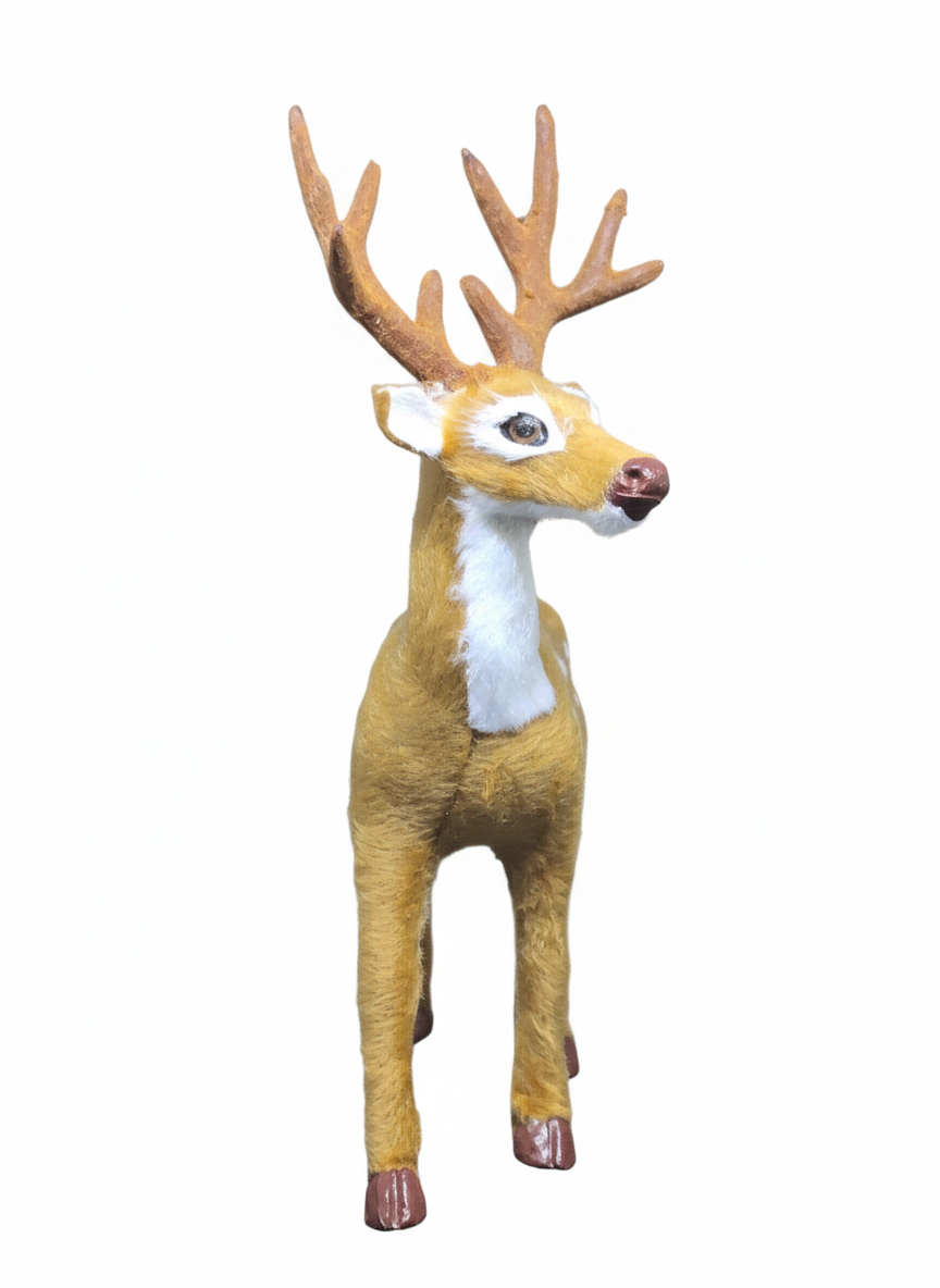 This lifelike fur reindeer is a wonderful addition to your holiday decorations. Its soft texture, detailed body design, and elegant stance make it ideal for tabletops, shelves, Christmas villages, window displays, or festive centrepieces.