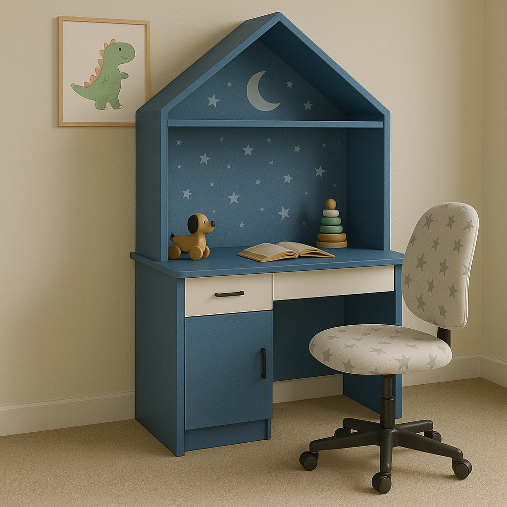 House-Shaped Design: A creative hutch with star/moon prints, sparking imagination and making study time exciting.