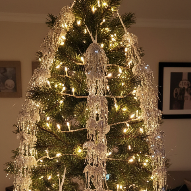 • Dazzling Design: Each garland is intricately crafted to resemble long, hanging icicles, creating a gorgeous waterfall effect on your tree.