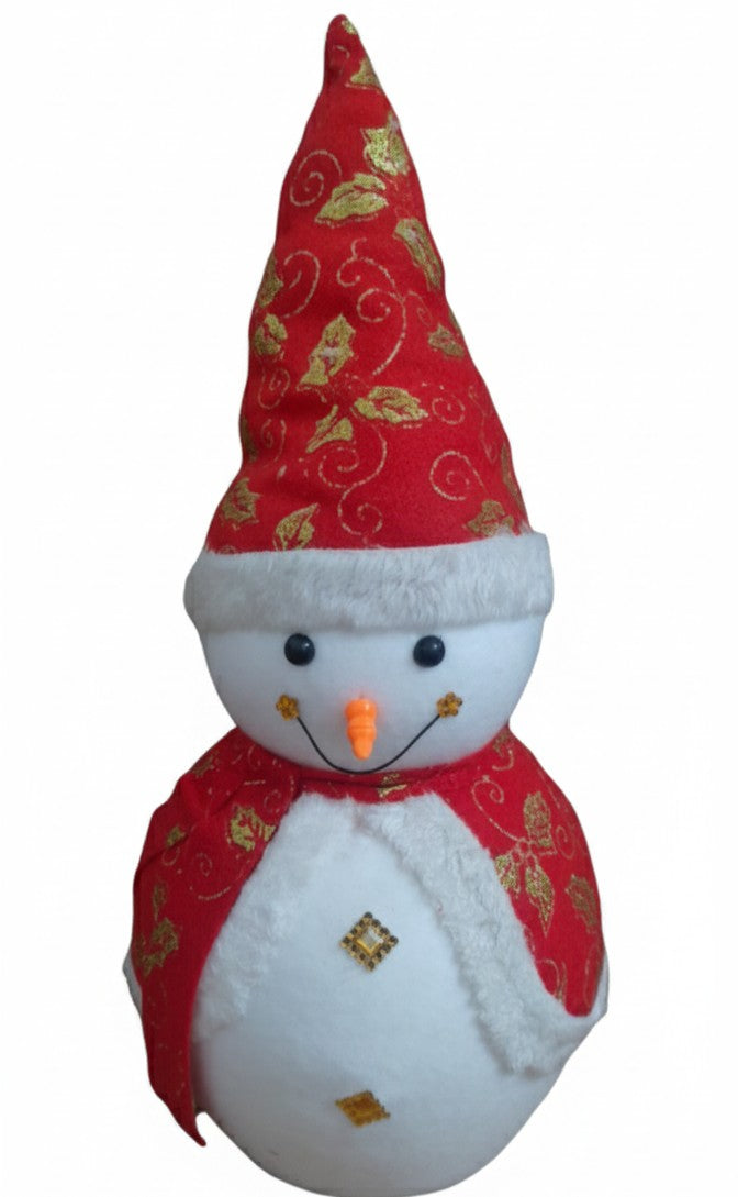 This elegant snowman figurine is designed to be the highlight of your Christmas décor. Standing 50 cm tall, it features a plush white body, a detailed red-and-gold hat and cape, and adorable facial accents that give it a friendly, festive personality.